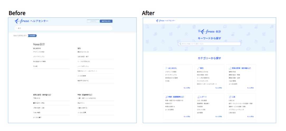 これまではヘルプページの記事は無秩序に格納されていたので、お客様が適切な記事まで辿り着けないことが多くありました。そこで構成と記事を整理し、ドリルダウン形式に編集し直すことで、簡単に適切な記事を選択できるようになりました。1700記事という膨大なコンテンツをどのように再設計するかに頭を使いました。