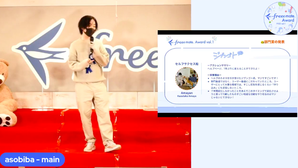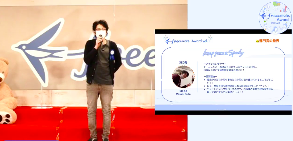 さらに部門賞の3名の中から、得票数が最も多かったメンバーに「第1回 we are freeemate. 大賞」が選ばれました。