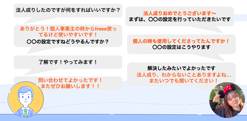 今回の受賞した内容は実際にお客様サポートを行っていた時のものなのですが、法人成りしたお客様に「おめでとうございます」と送ることを心がけていたことを評価していただきました。