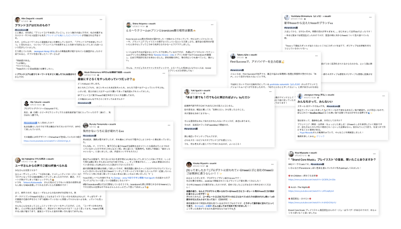 「freeeの人のコミュニケーションは素直で自然体だね」「freeeの取り組みは自由闊達でいいね」等、ブランドコアが伝わっているんだ!と感動する声ばかり。
