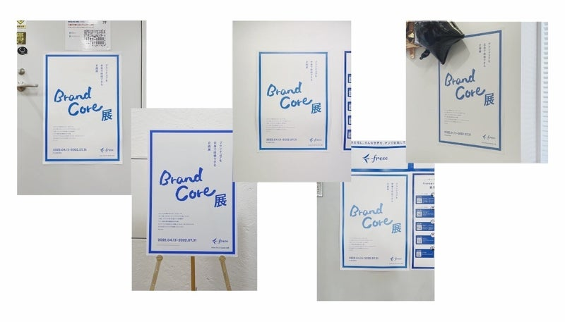 社内の至る所にBrand Core展のポスターを掲示。ちょうど出社するfreersが増えてきた時期だったので「お、何かやっているな?」と感じてもらえたら良いなと考えていました。在宅業務だとなかなか感じられない、イベントのワクワク感をこういった各フロアに貼られたポスターを見て感じてもらえたら……という思いがありました。