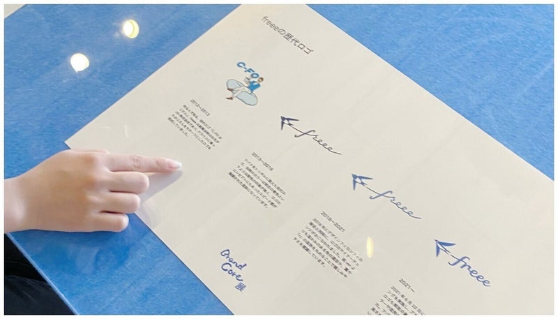 freeeのブランドに欠かせないロゴの変遷も展示。最初からツバメのロゴじゃなかったんですね。他にも現在のロゴに至るまでの過程を展示したり、freeeというブランドの歴史までも感じられる企画展になりました。