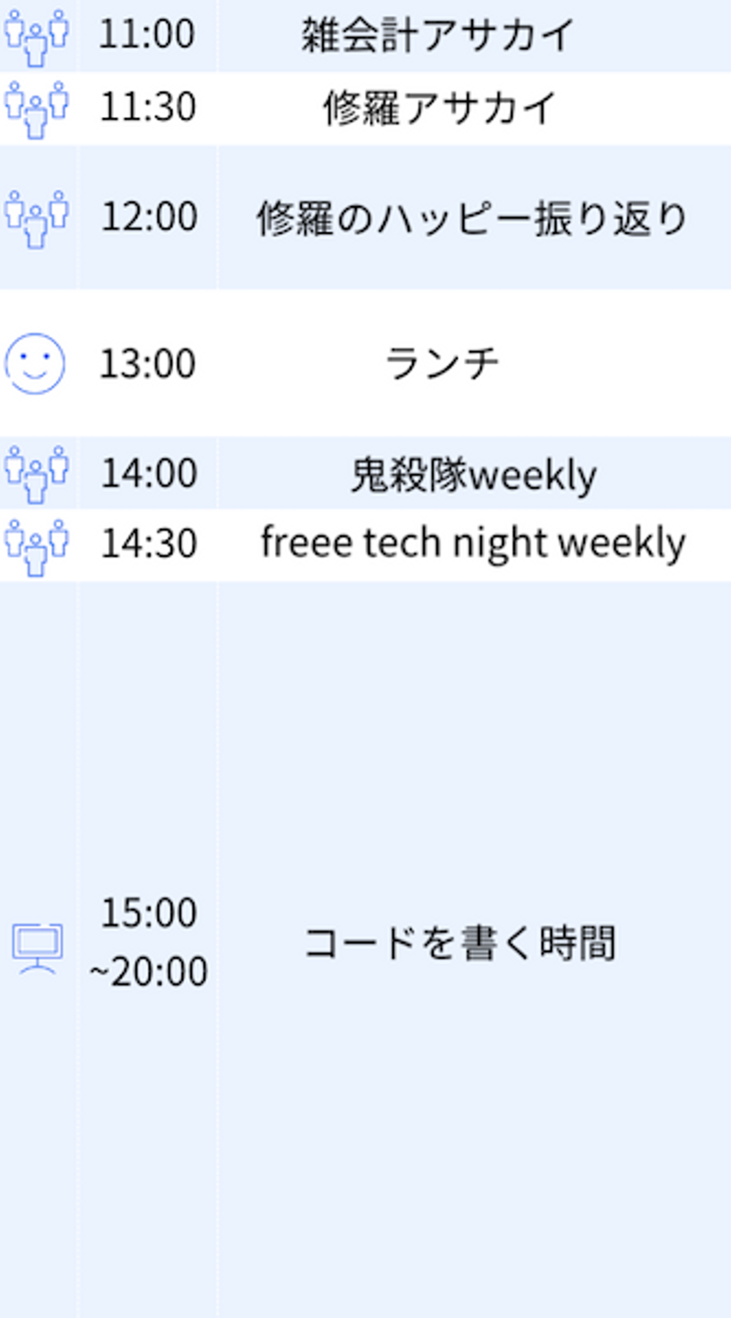 このように、集中したい&そのための連続した時間を確保したいので、ミーティングはなるべく時間帯を固められるように調整しています。