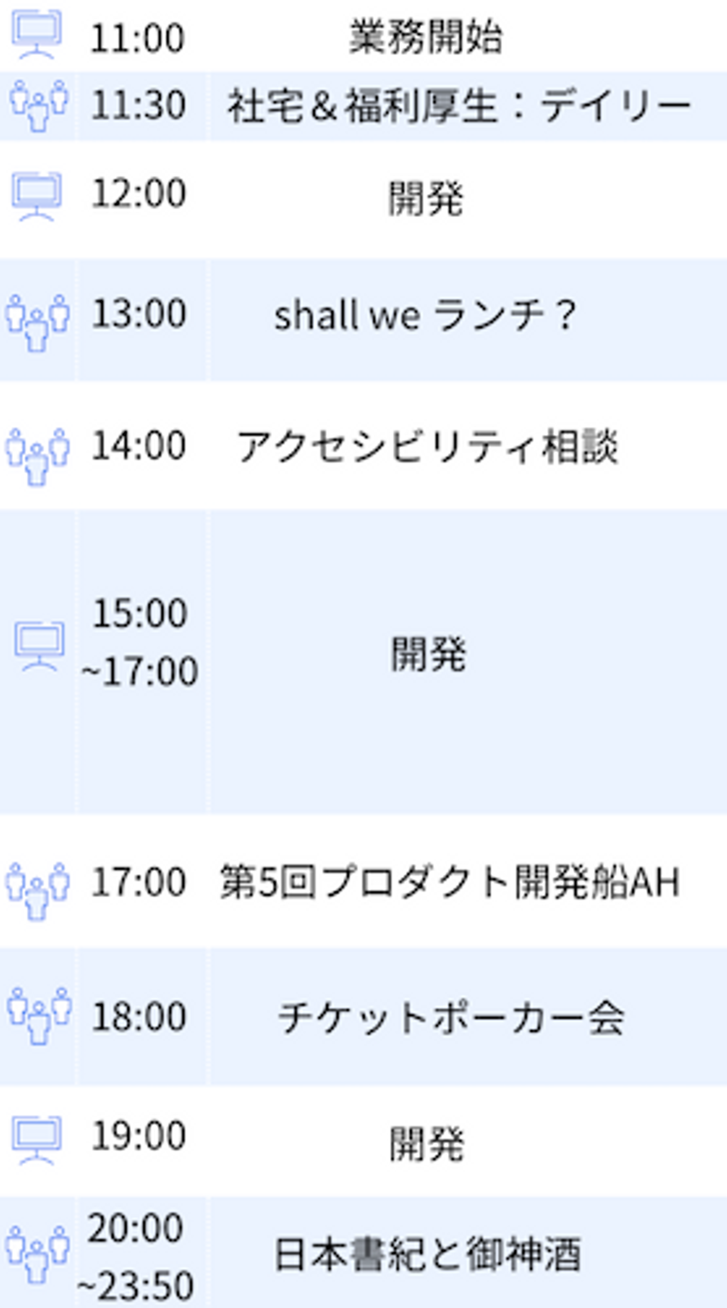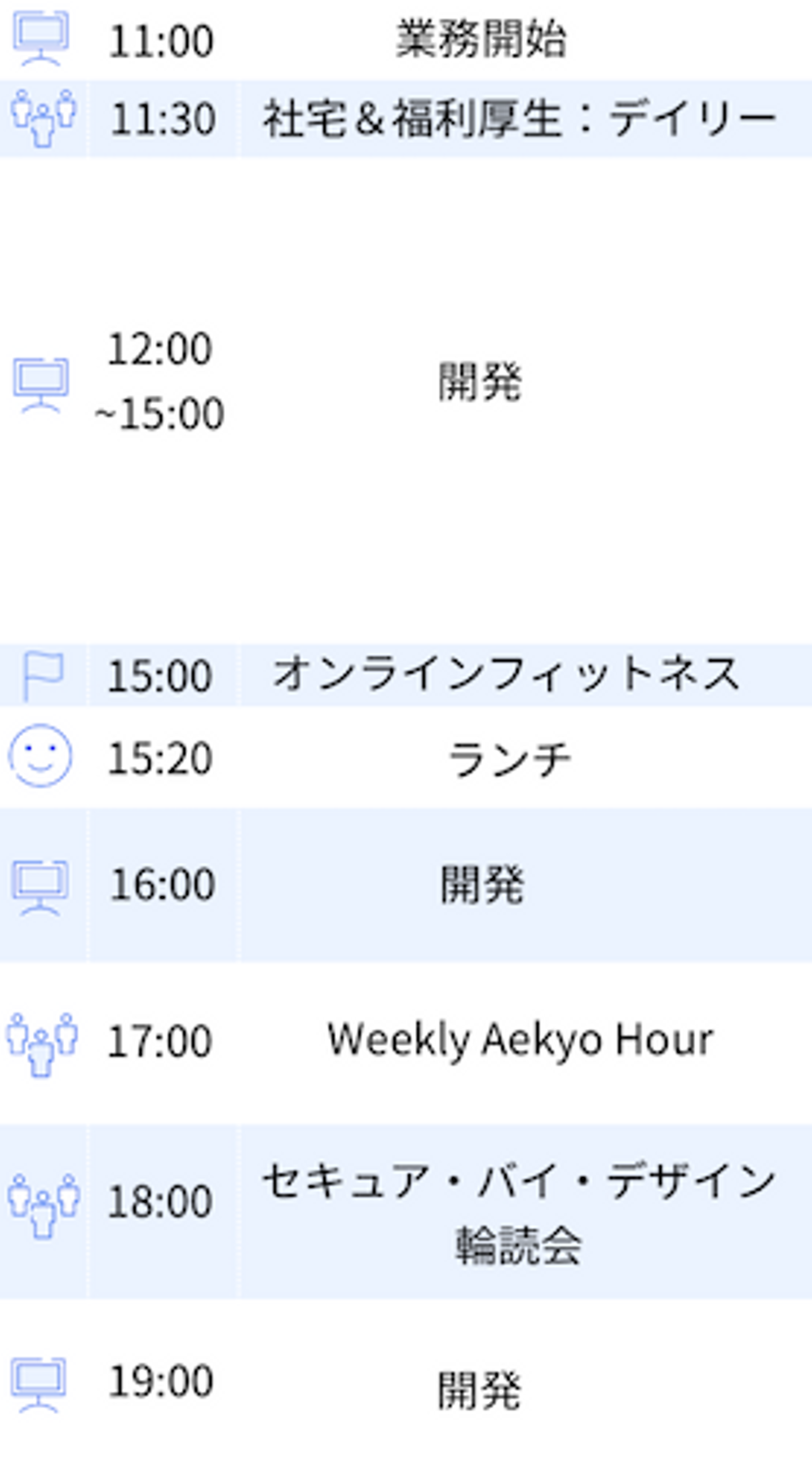 業務開始時間や朝会、スキマ時間で開発をしているのは同じです。