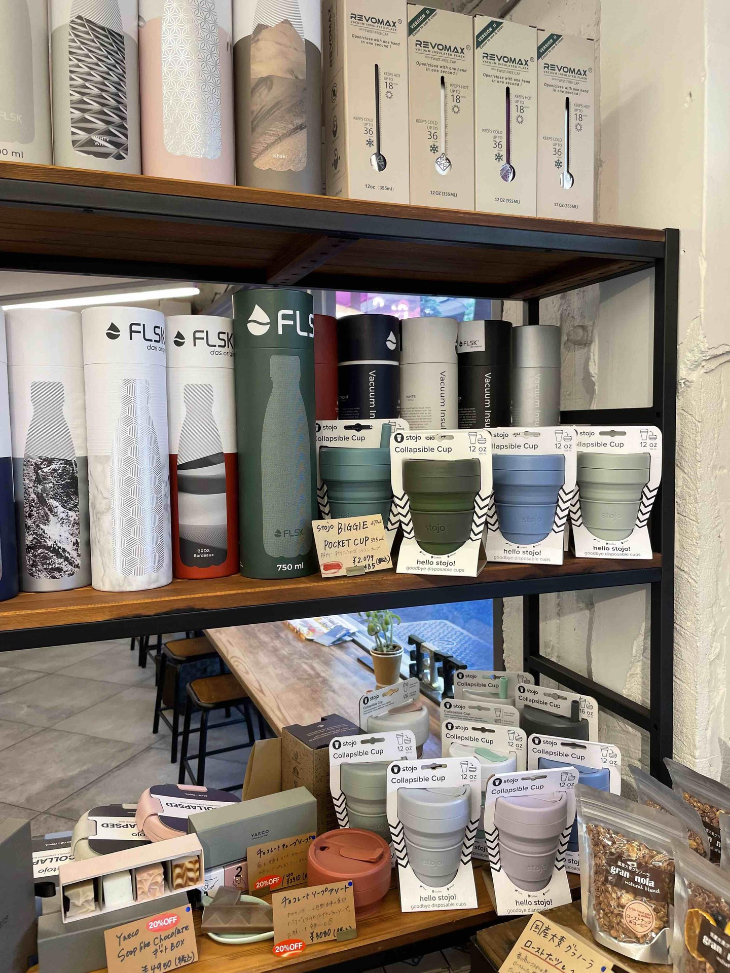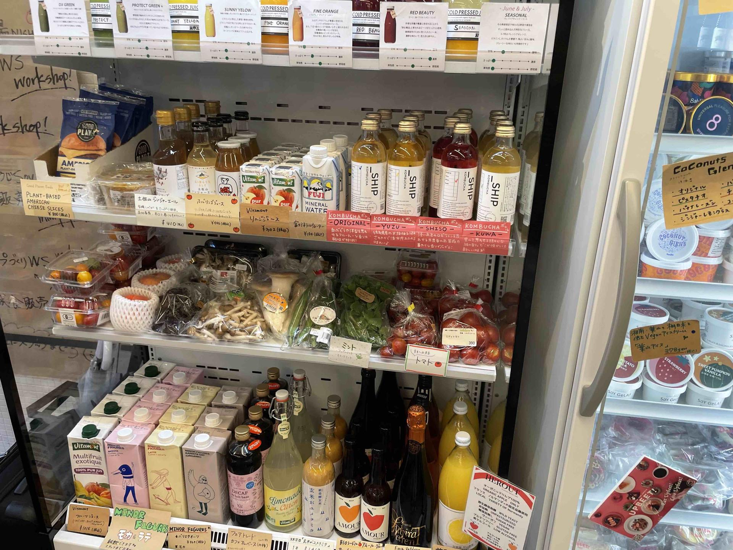 中に入ると様々なビーガン系食品、エコ製品などが棚に並んでいました。