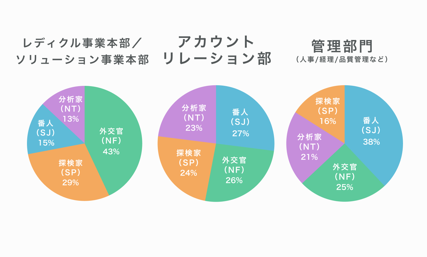 人の可能性を信じ、共感し、成長を促す「外交官」グループが、フロンティアの人間味あふれるカルチャーを牽引しているようです。次いで、エネルギッシュな「探検家(SP)」グループが多く、組織の行動力や柔軟性を生み出していることが伺えます。