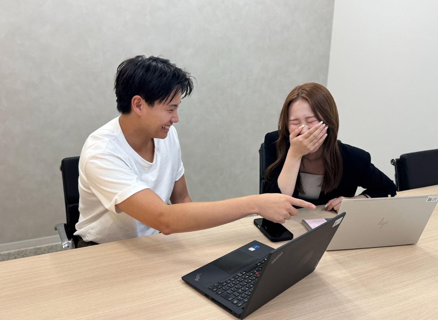 山﨑: 私と中村は、お客様に電話でアプローチするテレアポ業務が中心です。最近は、少しずつ自分で商談をすることも増えてきて、日々多くの学びがあります。