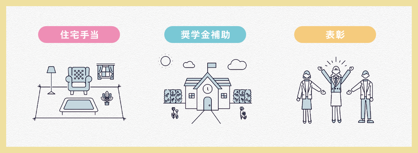 社員がより集中して仕事に取り組めるよう、住宅環境の充実を支援しています。その一環として、会社から家までの距離や条件により、手当を支給しています。これにより、社員は生産性の高い快適な生活環境で、仕事に専念できるように支援しています。