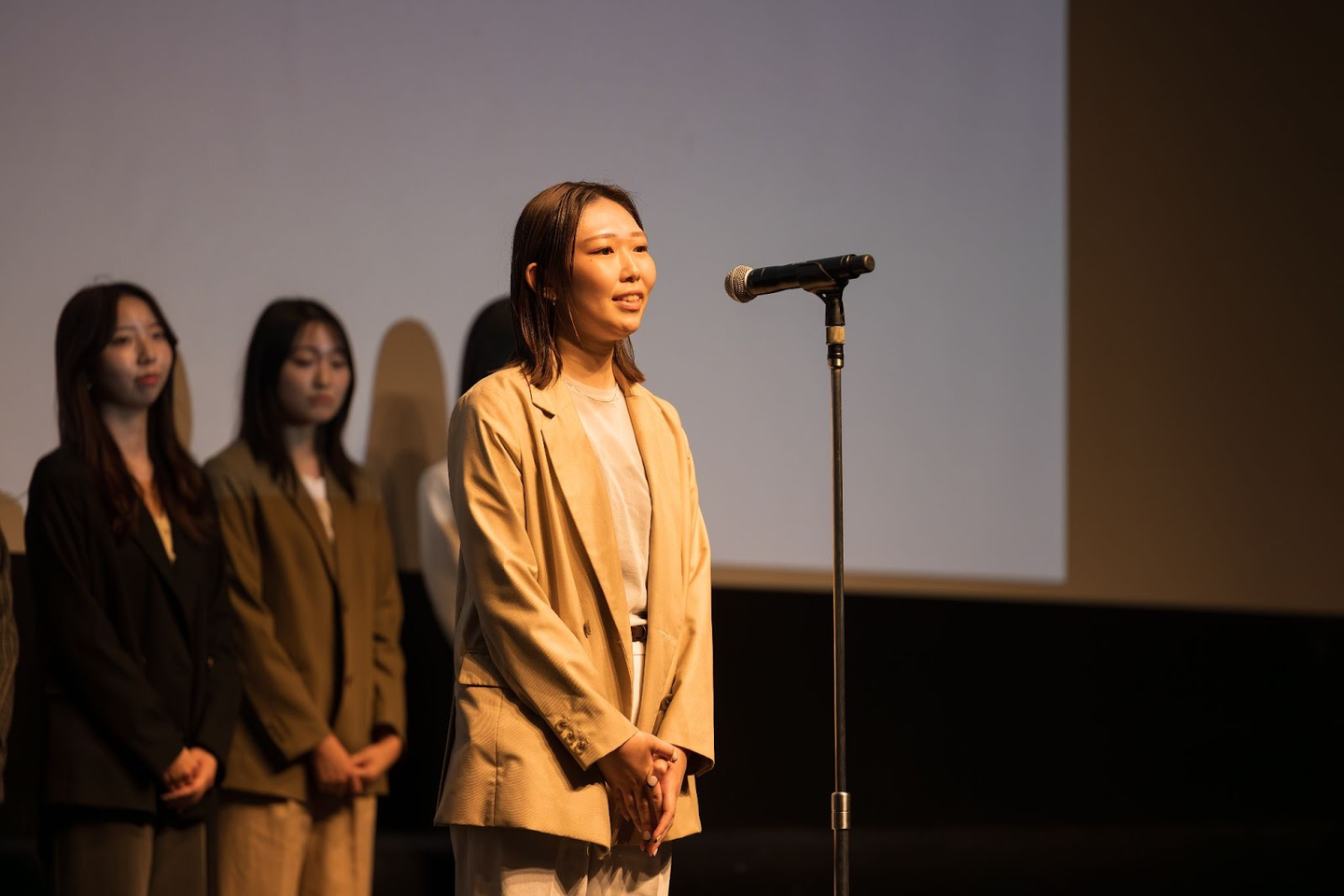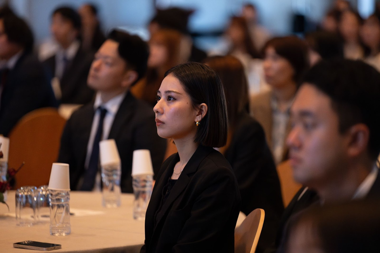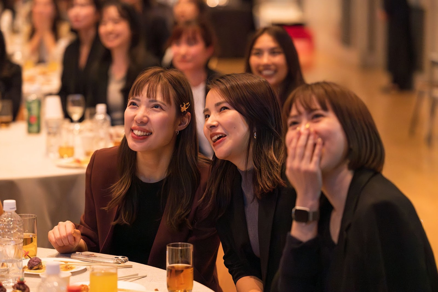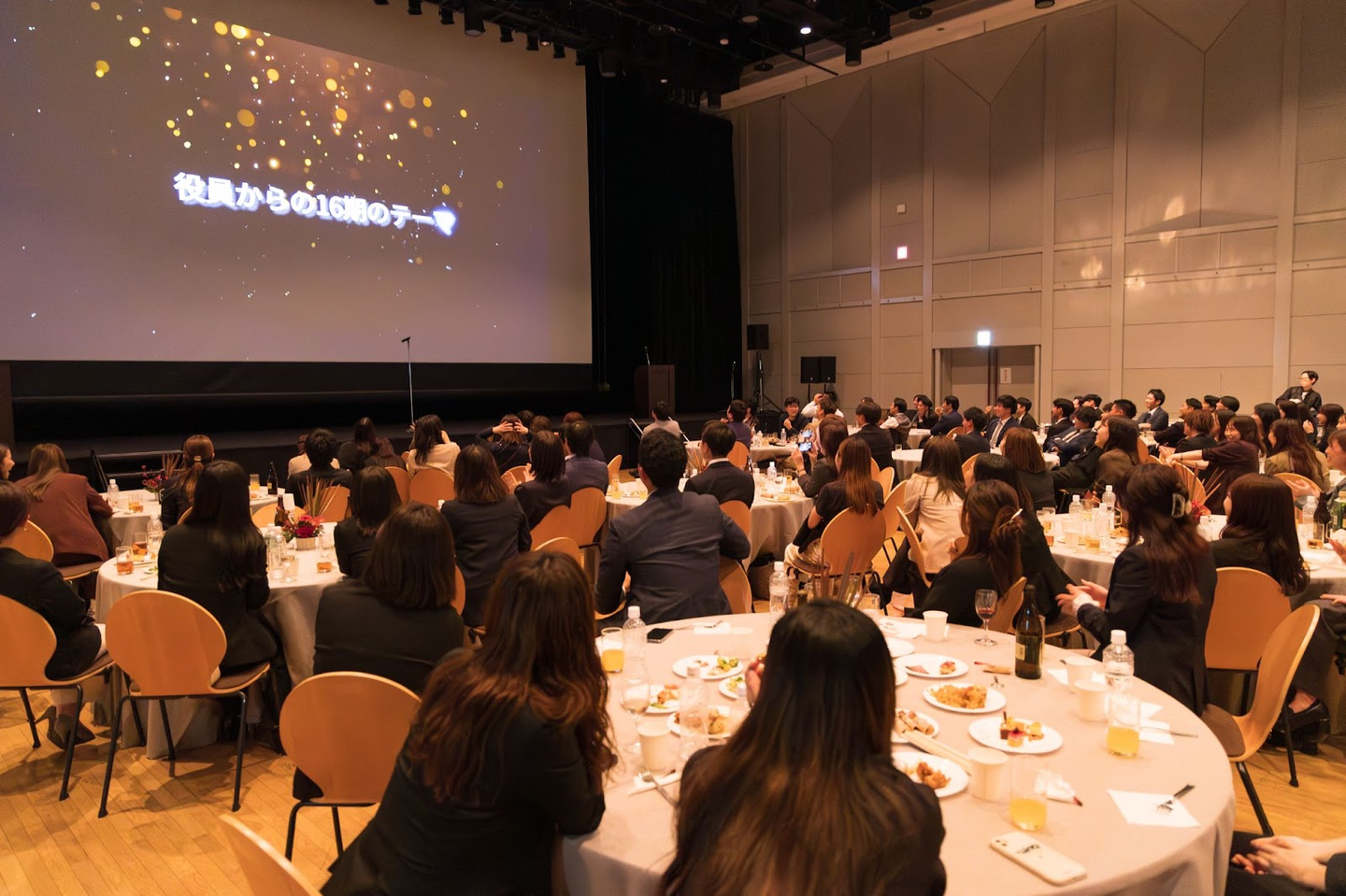 会場のスクリーンには、15期をまとめた動画が映し出されました。社内での様子から、プライベートの思い出まで。普段の砕けた雰囲気の写真には場がさらに温まります。