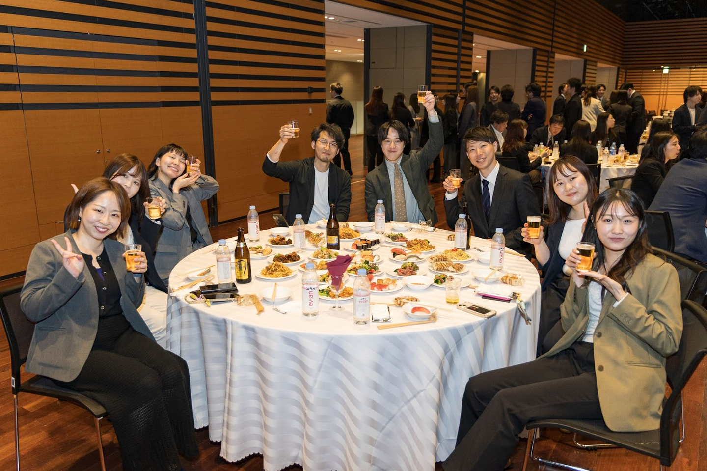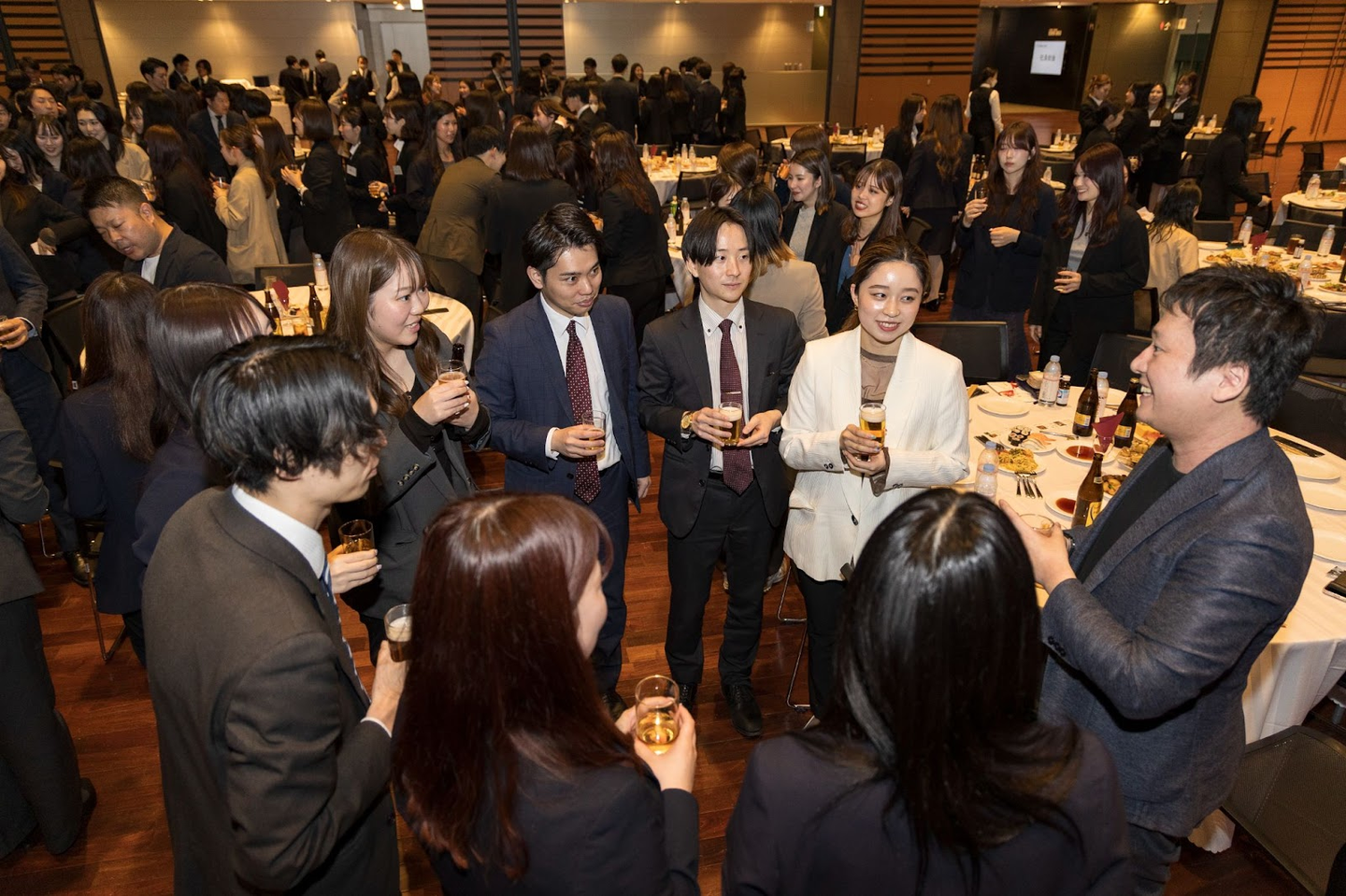 懇親会の終盤には、同期で記念撮影をしたり、仕事の話など熱い場面も見られました。