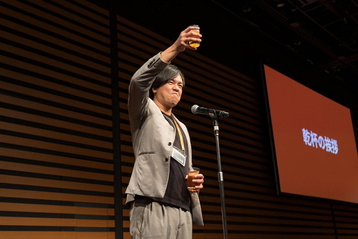歓談の途中、スクリーンに注目のアナウンスが!