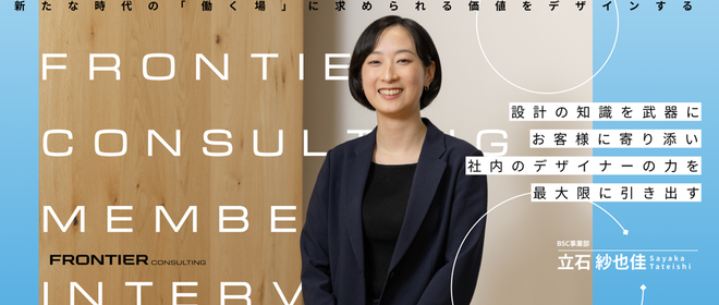 『働く人と働く場所の未来をつくる』 私たちは、「働く人と働く場所の未来をつくる」オフィスコンサルティングファームです。 働き方が多様化し、オフィスの価値が問われる時代。 私たちは、単なる「箱」をつくるのではありません。 企業の経営戦略や事業のあり方といった根幹から経営者と議論を重ね、 「あるべき未来の働き方」を定義し、それをワークプレイスとして創造する。 そして、働く人が輝けば、企業はもっと強くなる、という未来を実現します。 ▼HP https://www.frontierconsul.net/