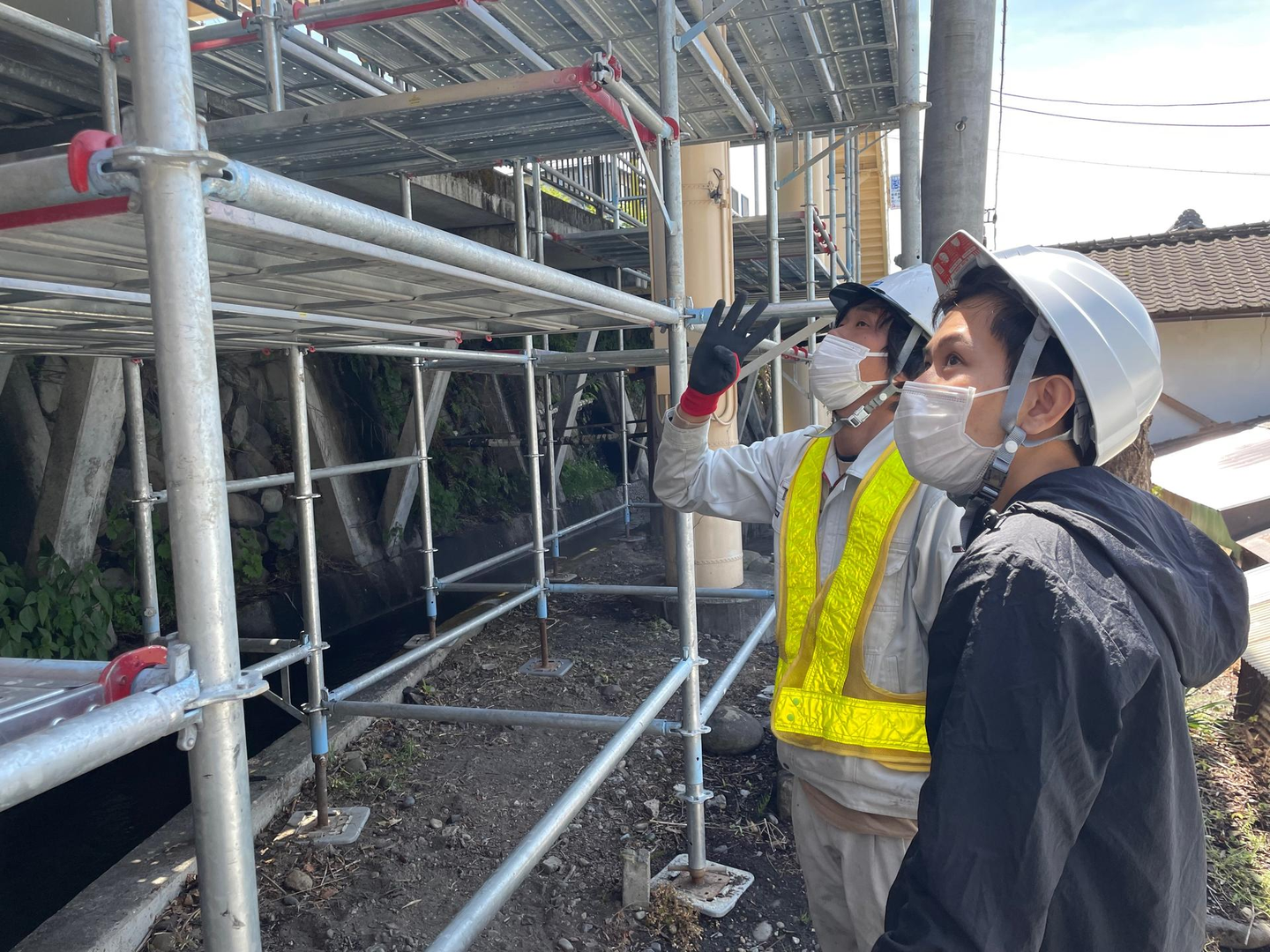 こちらの現場は、着工したばかりとのことで、足場の組み立てをしている様子を見学しましたが、