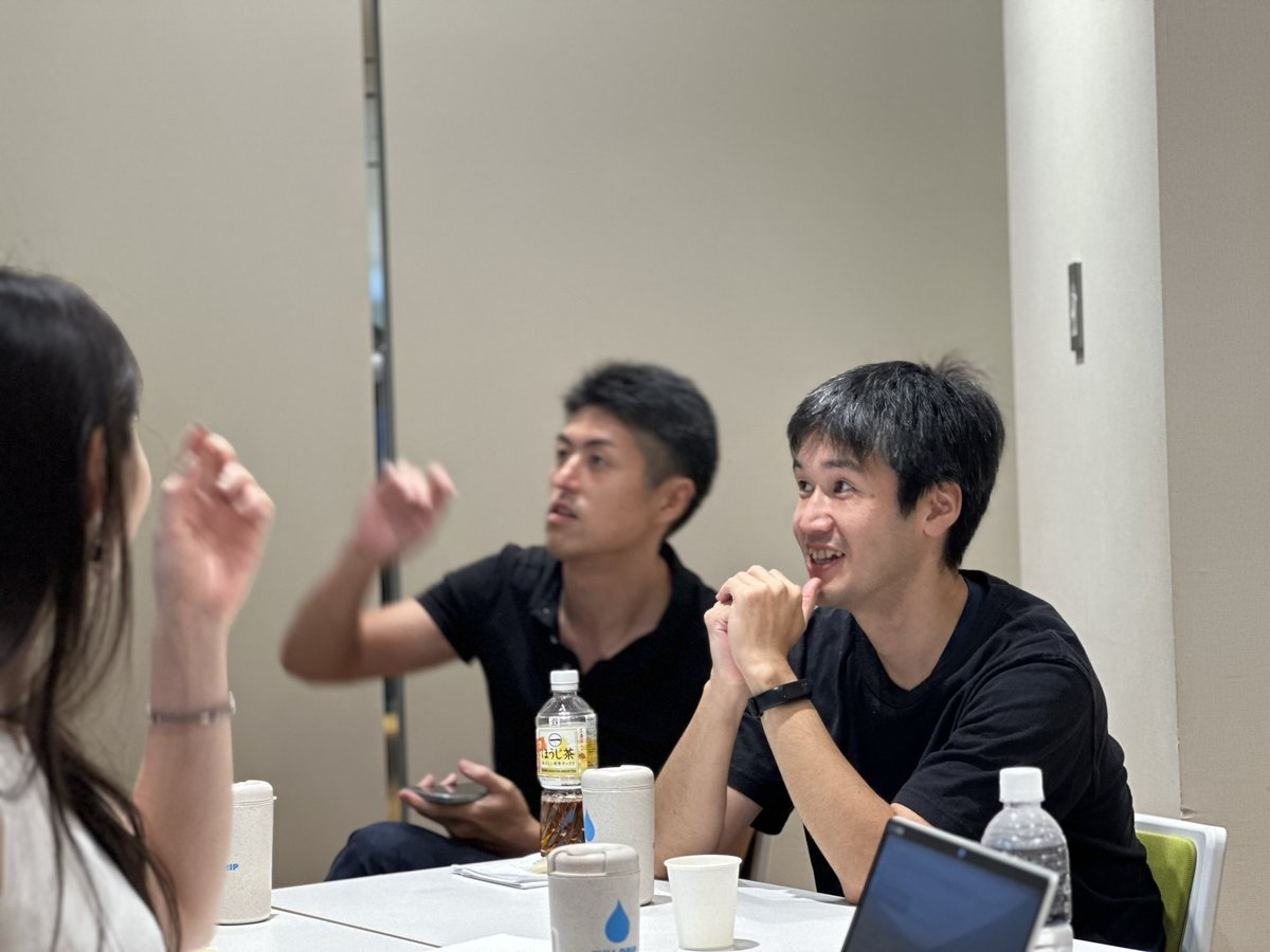 全社会議「ALL HANDS」にて、手前が筆者、奥はデータエンジニアの米村