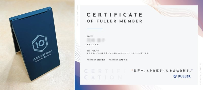 フラー入社の記念品は、新潟県が誇るものづくりの聖地・燕三条のMGNET (マグネット)さんが製作したアルミ製のフラーオリジナル名刺入れ。フラーの10周年記念ロゴを印字しました。