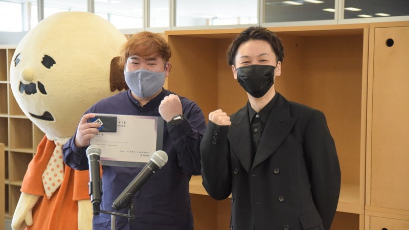 株式会社スノーピークビジネスソリューションズが手掛ける、映像と音声でオフィスを繋ぐ「インタラクティビジョン」を活用し、柏の葉本社と新潟本社をオンラインの大画面で接続。Zoomで社員100人が見守る中、新卒7人を含む2021年5月〜2022年4月に入社した合計28人に会長の渋谷と社長の山﨑が入社証を手渡しました。