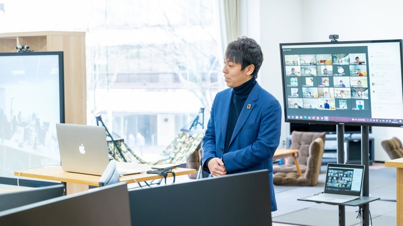 一方で、感染予防対策を講じた上で交流の場としてオフィスも活用するなど、オンラインとオフラインを組み合わせた新しい働き方の中での入社式となりました。