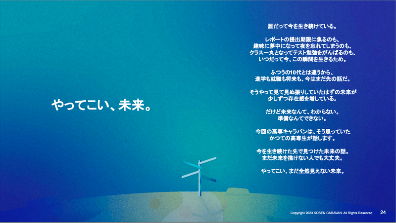 『高専キャラバン2023』は「やってこい、未来。」をテーマに、等身大の高専生に向けたコンテンツを準備しました。