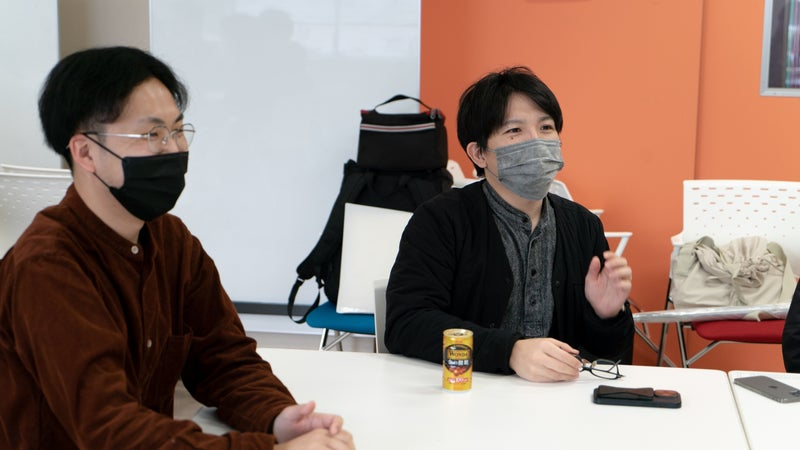 「でも、僕の場合は人と関わることが好き=人と話すことが好き、じゃなかったんです。高専のときのみんなで同じ方向を見て実験をするとか、そういうことが好きだったと気づきました」と高専での経験から感じたことを軸に仕事を見つけ、好きではないけれど自分がやりたいことと結びつくプログラミングが今、役に立っているのだと教えてくれました。