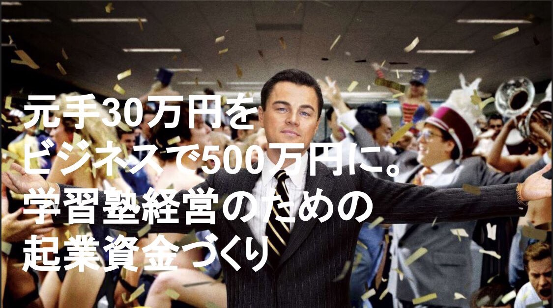 元手30万円を初めてのビジネスで500万円にして、 学習塾経営のための起業資金づくりをしたときの戦略の話です。新卒で入社したH.I.S.退職後の23歳の4ヶ月間の頃です。