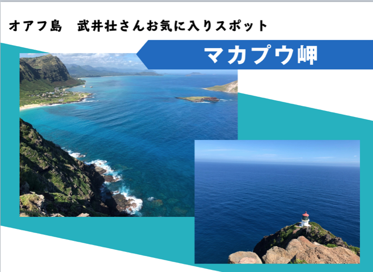 武井:マカプウ岬は、ピンクピルボックスとは対極の位置にある場所で、素敵な景色が観れる岬なんですけど。そこに向かうまでが3キロくらいかな?