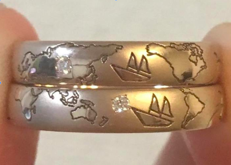 はい、タビナカ創業者の三木と今野がタイムチケットで出会ってタビナカをスタートしたように、僕と妻もタイムチケットというスキルシェアサービスを通して出会いました。地球のどこにいても好きなことは変わらないというお互いの価値観から、世界地図をデザインした指輪を作り、地球は俯瞰して見れば青いので、人生の山も谷も俯瞰して見れば美しいだろうという思いを込めて、結婚式は「Earthblue」というコンセプトで行いました。