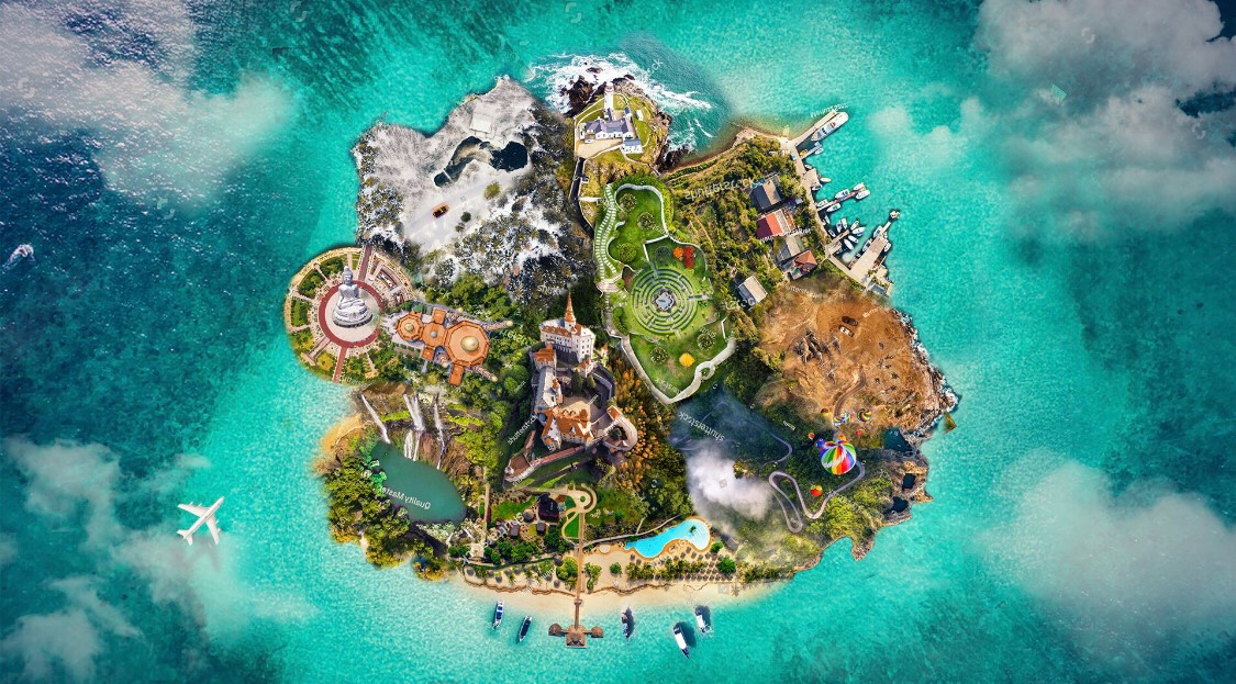上の絵は開発進行中(といっても過言ではない?!)観光都市のイメージです。タビナカ社員がゼロベースで考案して開発の素地をつくっています。詳細は非公開なのですが、海外企業を買収して、実際に観光バスや船を走らせているわたし達からすれば、物理的な島や観光資源の開拓に着手する未来はそう遠くない手応えがあります。
