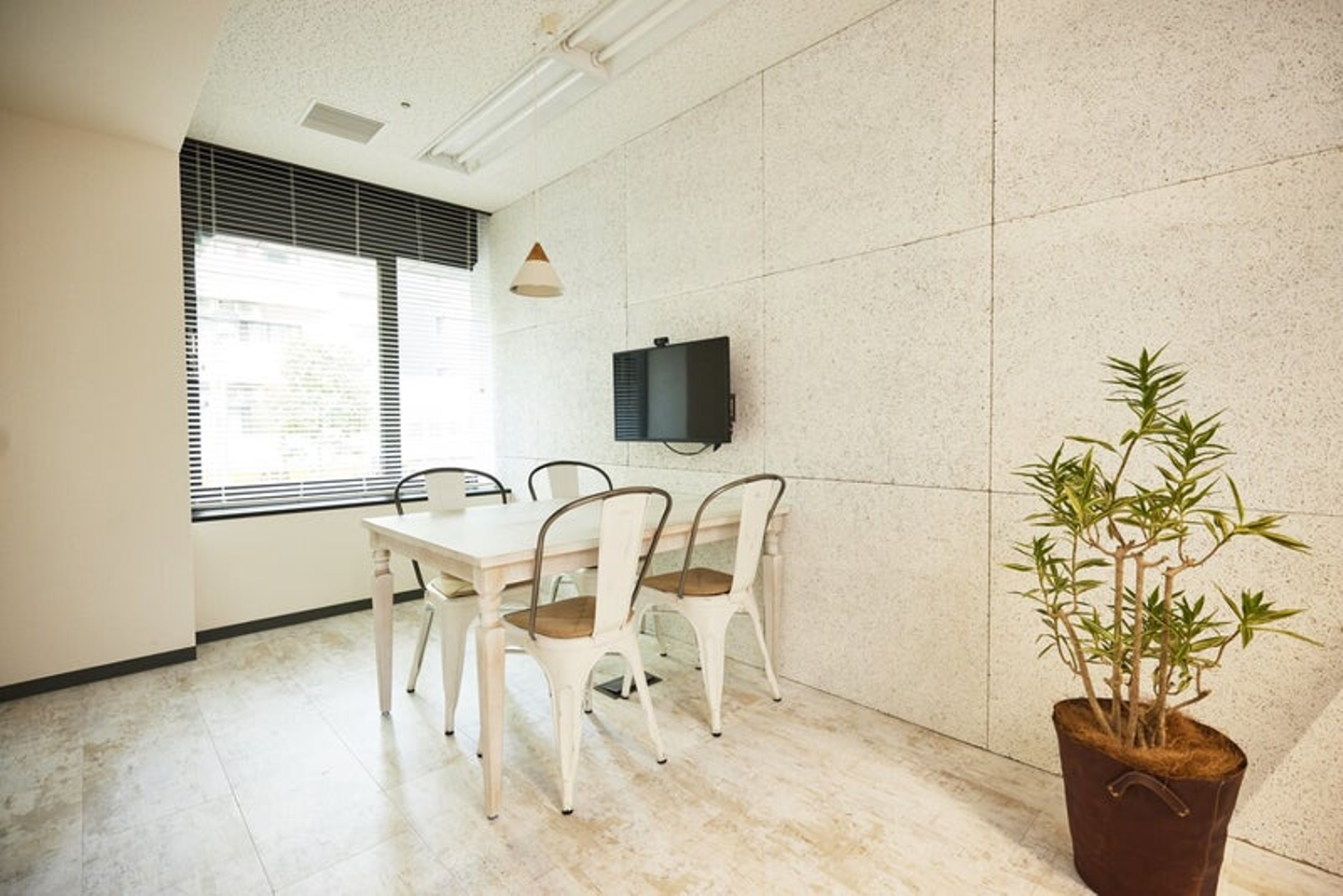 会議室Bは2~4名用で、作家さんとの打合せや最近はリモートで打ち合わせする時に使ったりと、使い勝手の良い人気の部屋です。何より「机とか壁が白いからカメラ映りがよく見える!」のがアピールポイントです。