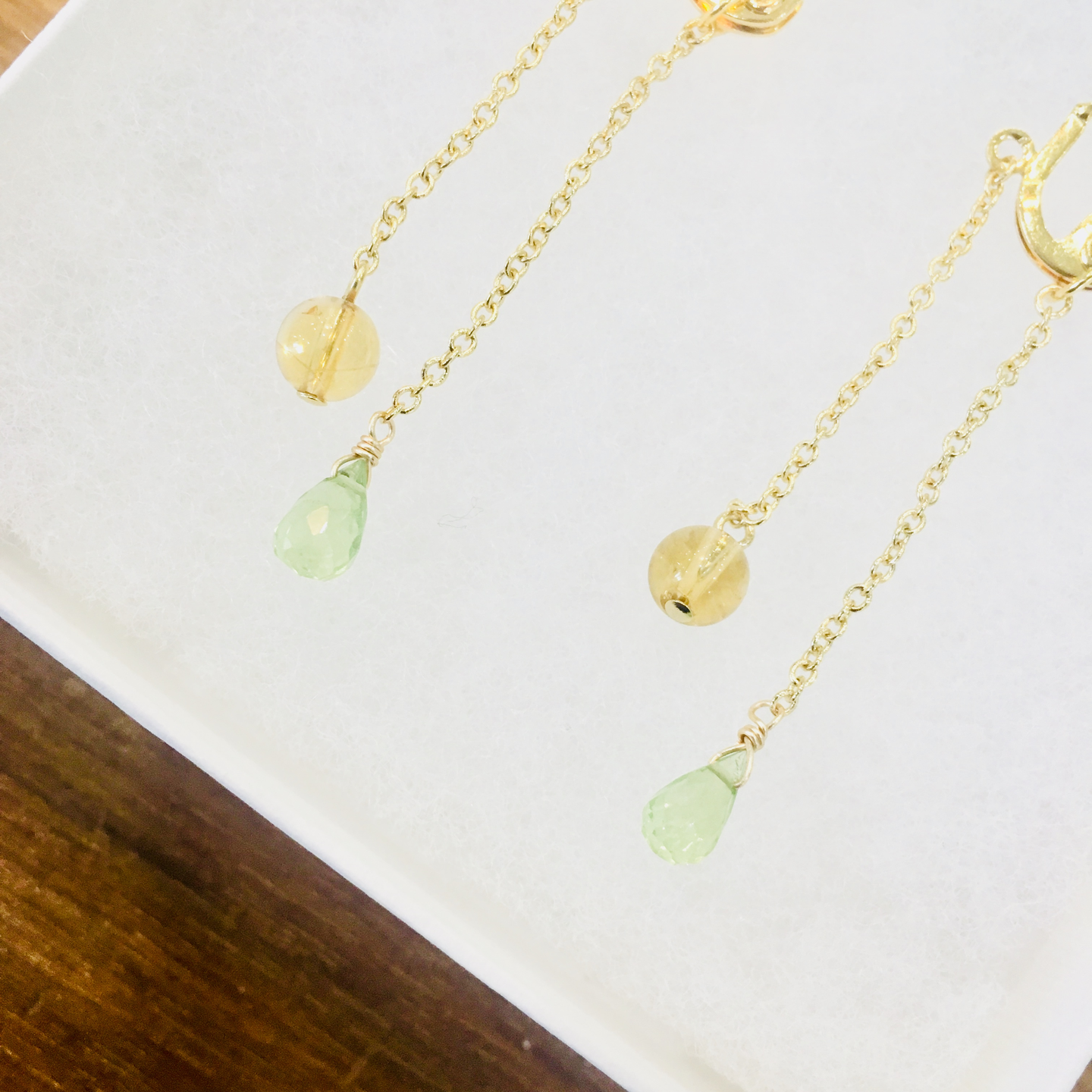 奥様の誕生石「ペリドット(グリーン)」と色合いを合わせて「シトリン(イエロー)」を選択。