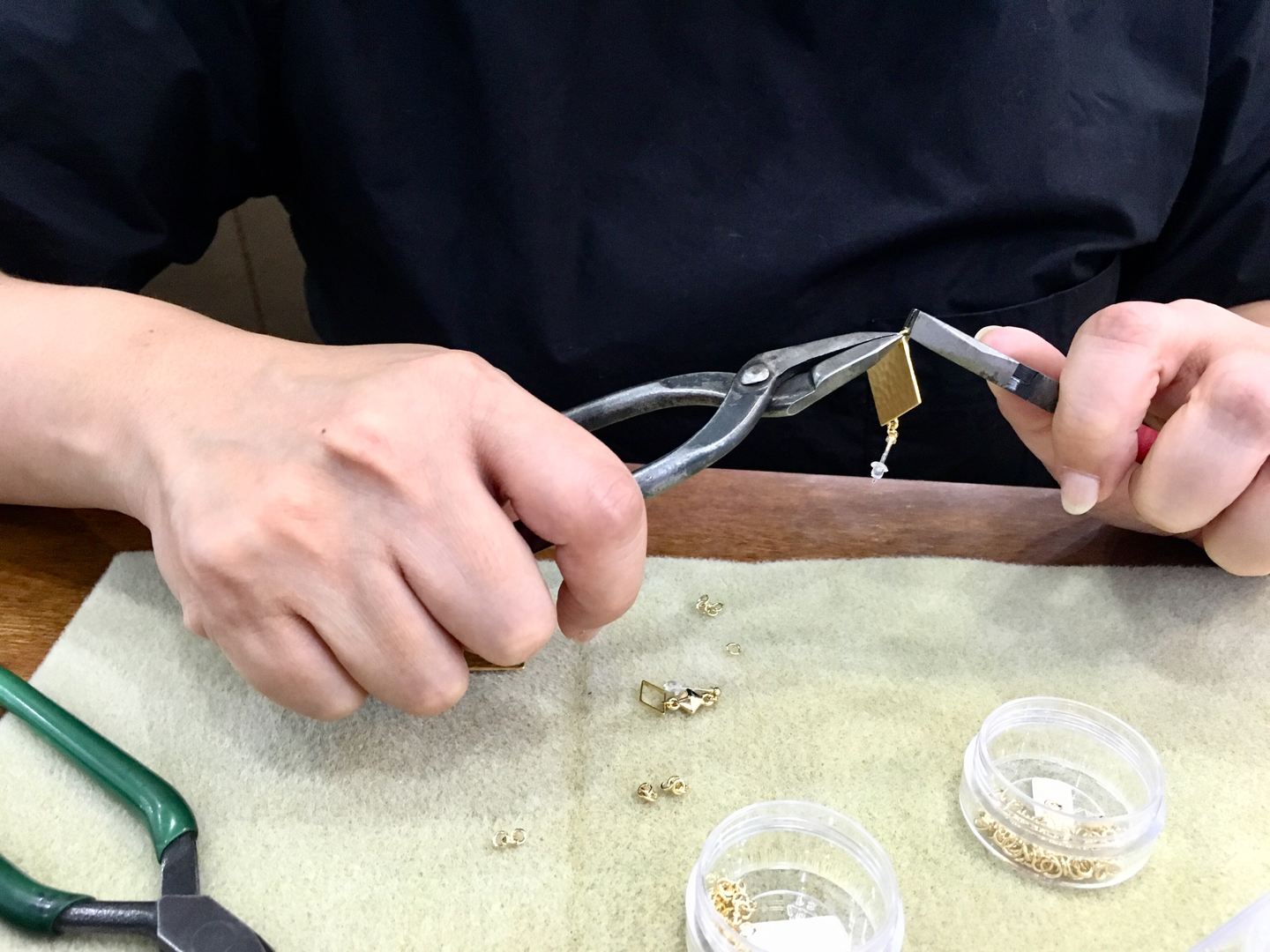 先ほど私も制作現場を見学をしたのですが、あっというまに1つアクセサリーが完成です。