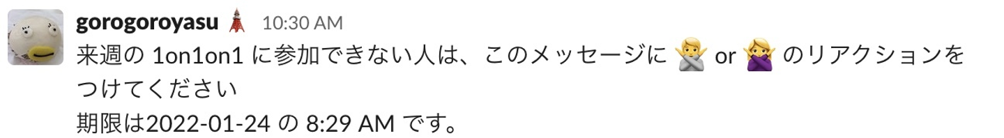 - 参加希望者は、ビジネスコラボレーションツール「Slack」のチャンネル“#1on1on1”に入る。