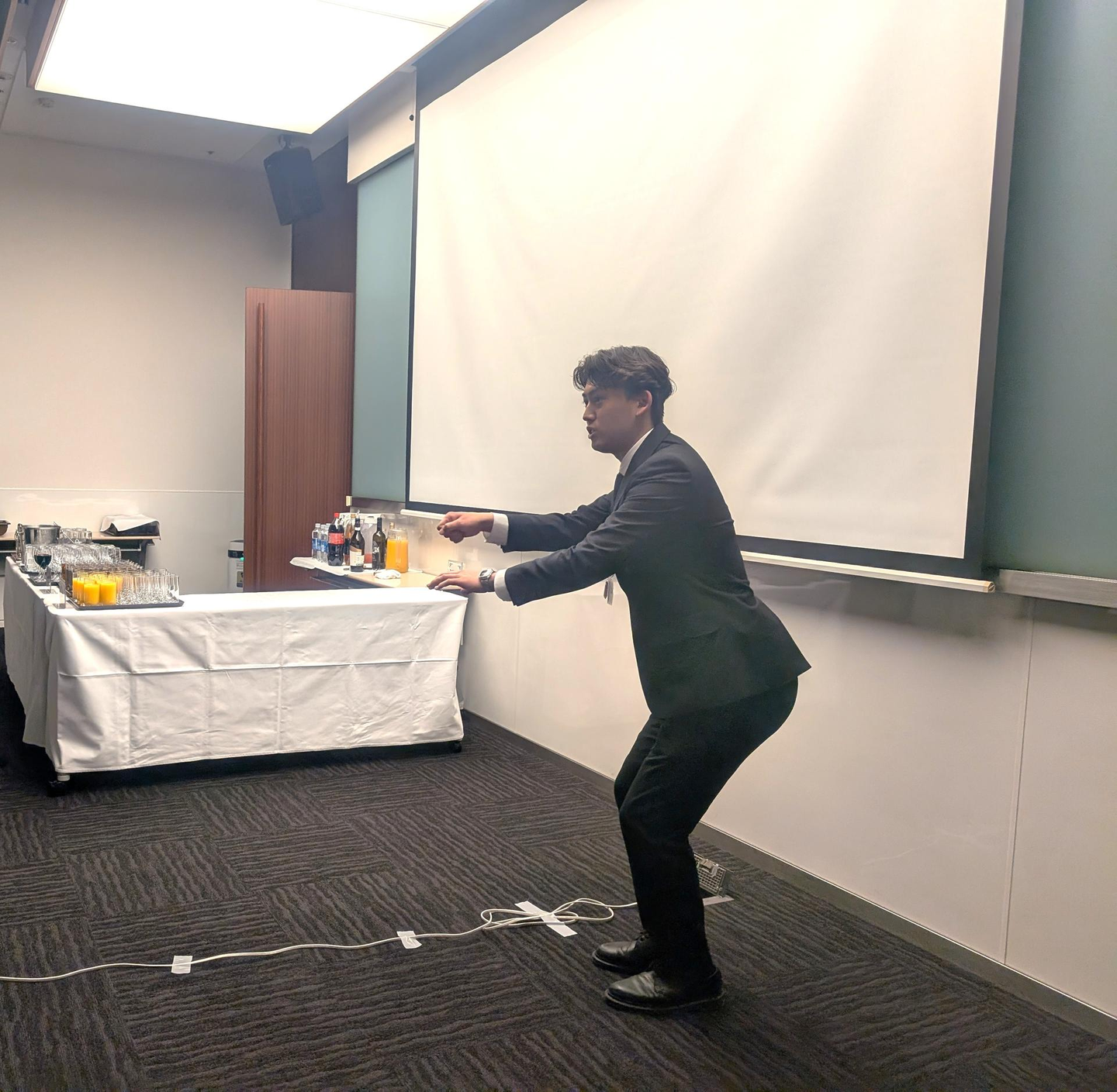 まずは、会場の雰囲気を盛り上げるために、特攻隊長(25新卒)がお得意の一発ギャグを披露!