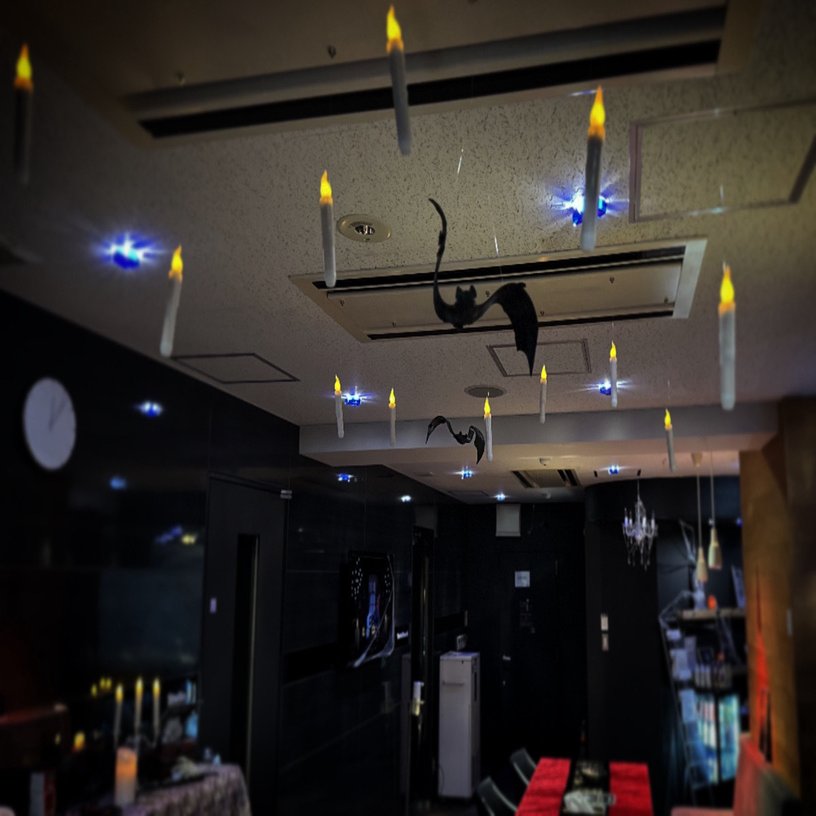 魔法で宙に浮いているロウソクやコウモリ🦇