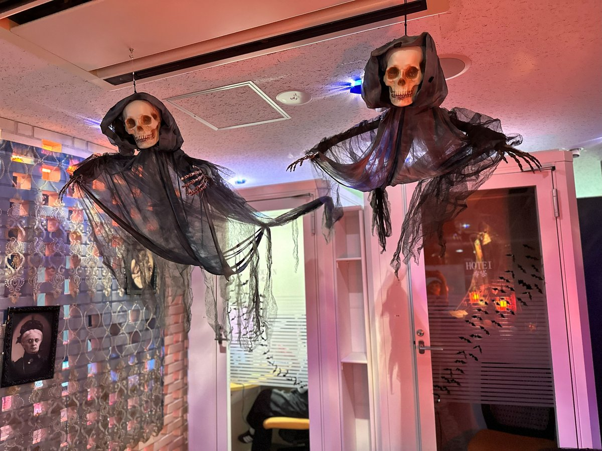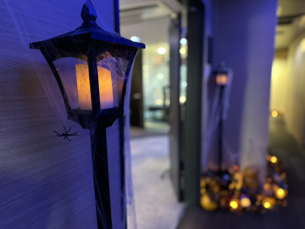 ハロウィンは、特に「ここ、オフィスだよね?」と驚きを楽しんでいただけるよう全体的に薄暗くしてみたり、不気味な雰囲気はありつつもハロウィンのワクワク感を演出しました。