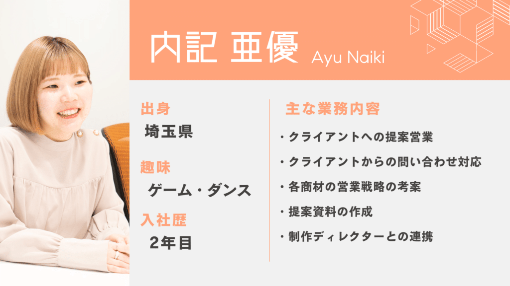 制作チームの中でディレクターさんがやるものもありますが、営業側で出来ることもあるので、ディレクターさんと二人三脚で進めていけるようにしています。
