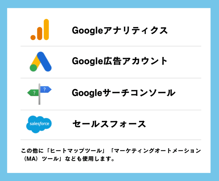 私の場合、HP経由での問い合わせを増やして売上を上げる、ということが目標の一つになっているので、主にHPに関するデータを様々なツールで見ています。