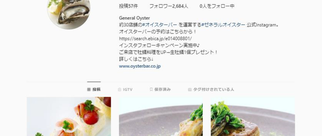 公式instagramをスタートして、もうすぐ半年!たくさんの方にフォローしていただけるように、牡蠣が食べたくなる!おいしそうな(もちろん、おいしいです)牡蠣料理を随時更新しています。フォローキャンペーンも実施中!真牡蠣のおいしいシーズンです。ぜひお近くのお店で、旬の牡蠣をお楽しみください。http://www.oysterbar.co.jp/