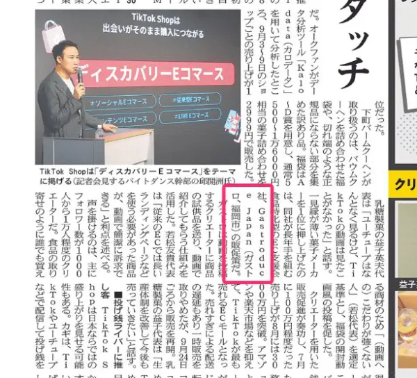 支援を行った Gastroduce Japan株式会社 が、食品ECに特化して培ってきたノウハウをTikTok Shopに応用しました。