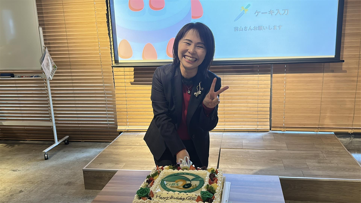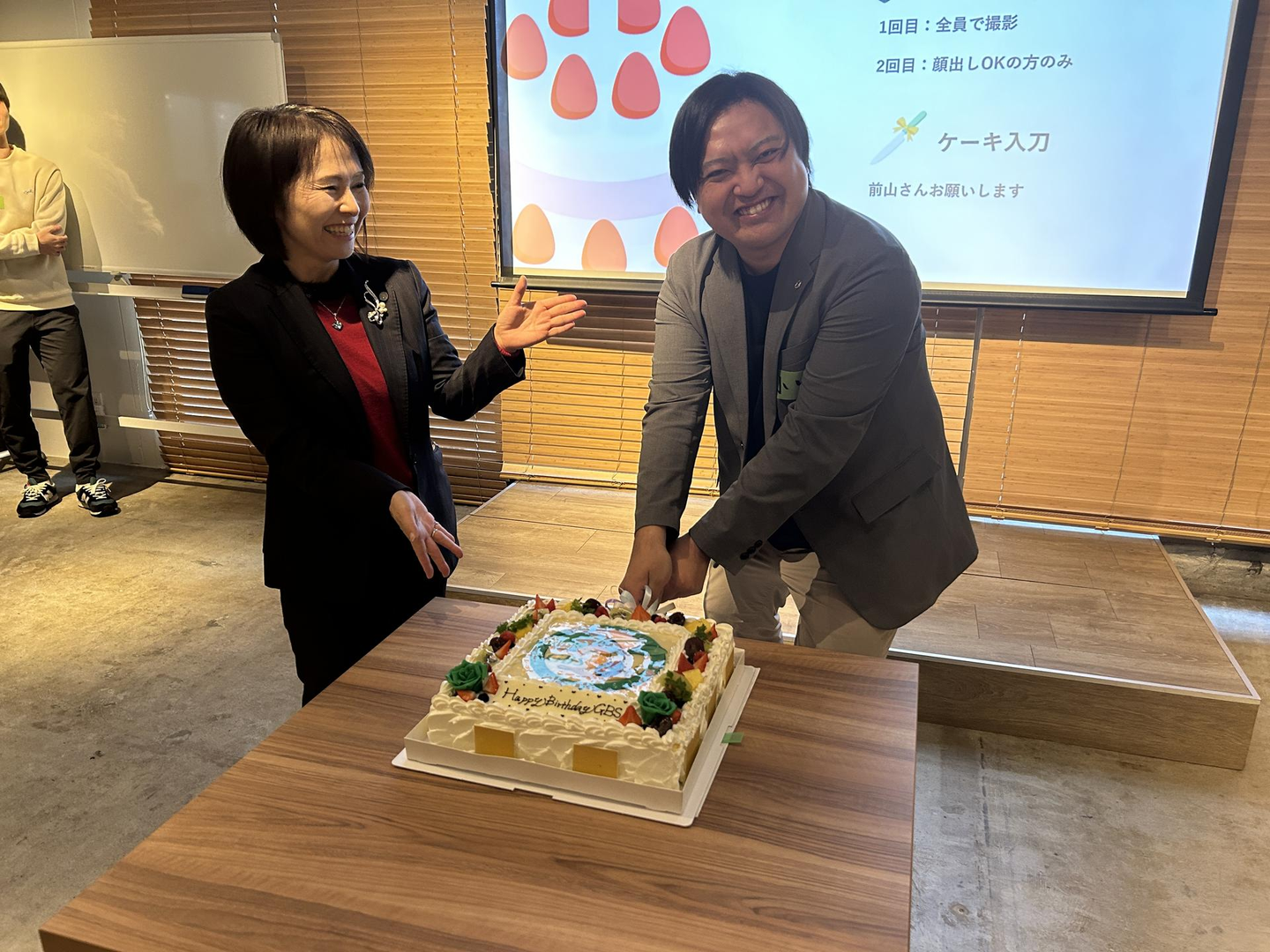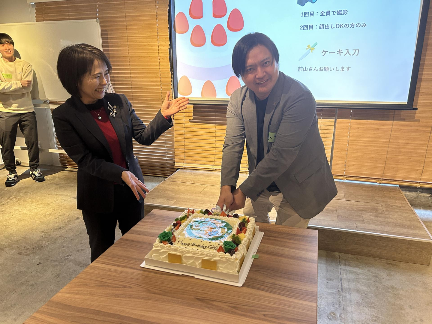 いよいよケーキ入刀🎂前山代表、素晴らしい笑顔です😊