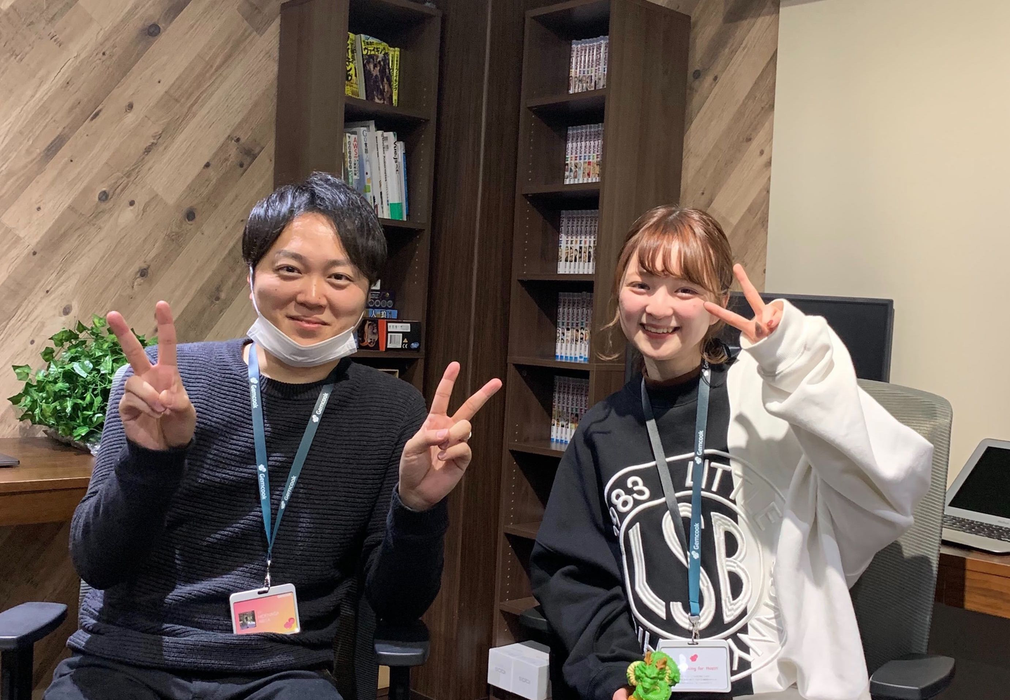 エンジニアやデザイナーは普段この部屋で作業をしています。森をテーマにしていて、緑と木の配色でリラックスできる空間を意識しています!