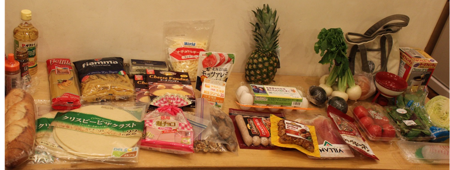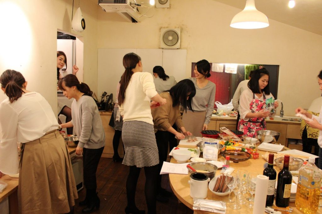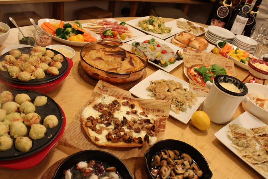 カルパッチョ、サラダ、餃子、チーズフォンデュ、ピザ、ラザニアと、みんなテキパキと準備を始めました!