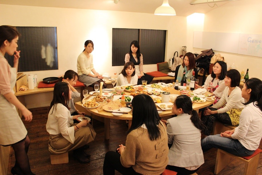 食卓を囲んで、自己紹介タイム。たくさんの会話が飛び交います。また、次回は何をしたいか、幹事はどうするかなども話し合いました。