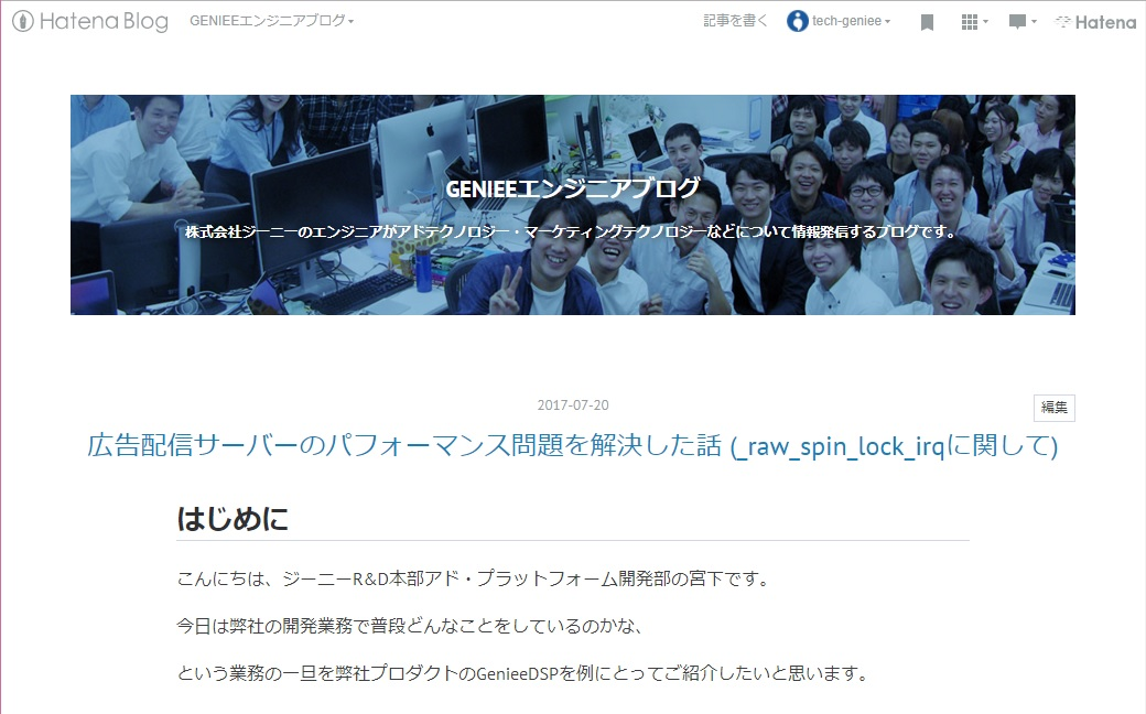 ジーニーは、結構、面白い技術を使っていて、色々発信したいと思っていたんです。でも、ブログもなく、あまり社外に伝える機会がないな、と思っていました。