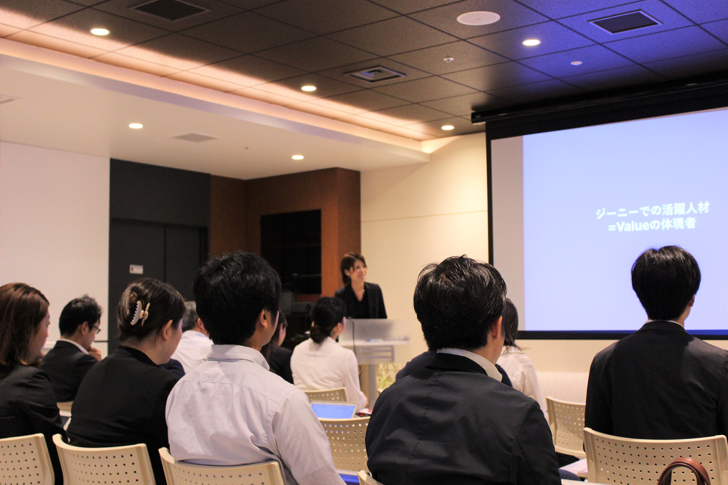 社名の由来、高い志を持ったプロフェッショナル集団でありたいこと、ジーニーの文化や社内の取り組みをついてお話ししました。
