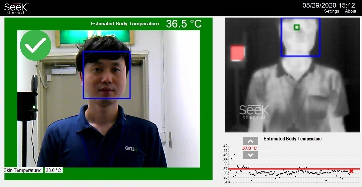 ▲サーモグラフィー(サーモカメラを使用した体温測定)を導入し、社員の健康管理をサポート。