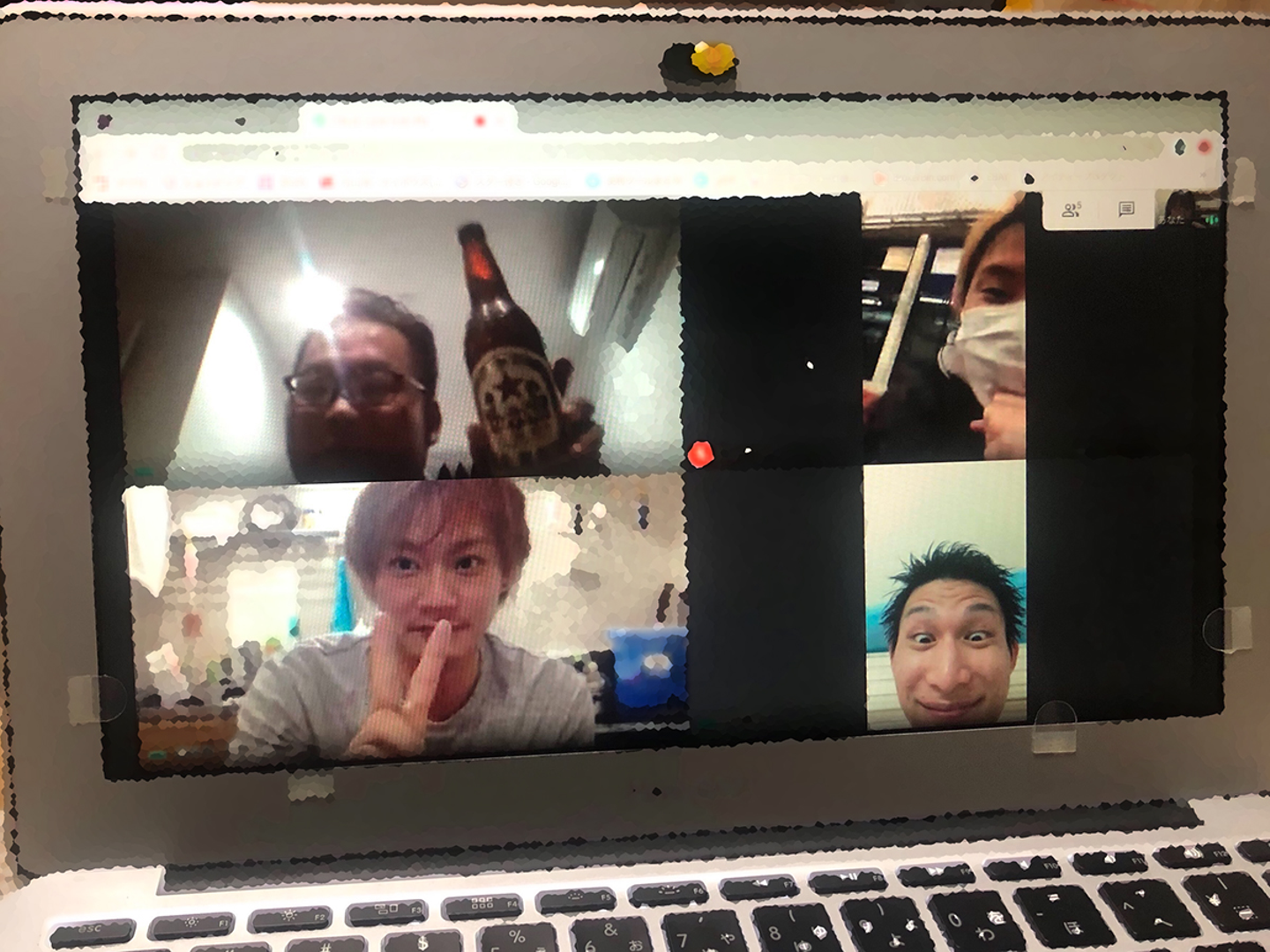 ▲オンライン飲み会の様子。飲食代は後日会社より支給する(回数制限はないが、月合計4,000円まで)。