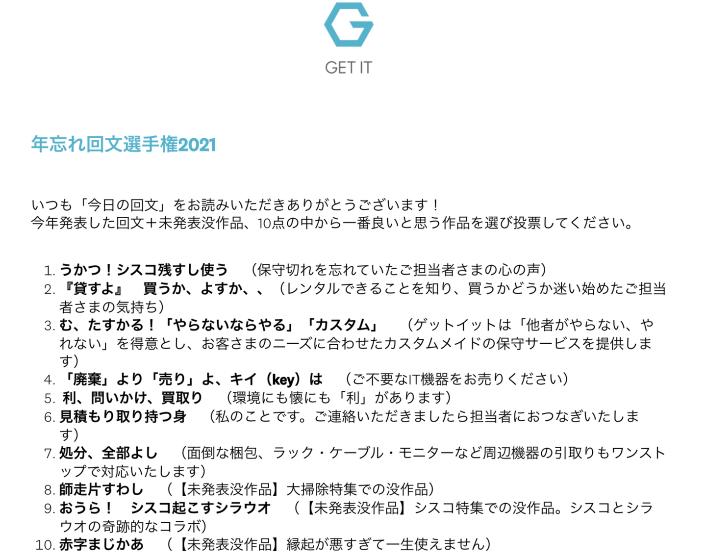 というのは冗談ですが、これまでにも回文で会社紹介をしたり、メルマガのテーマに合わせた回文を作ったりと、精力的に活動しています。