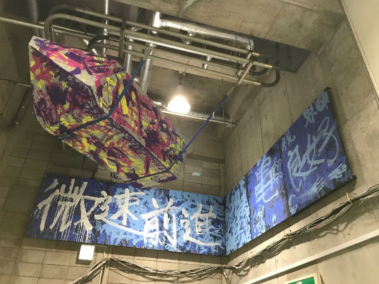社歌『微速前進』の撮影に使った社員みんなで作ったセットです。