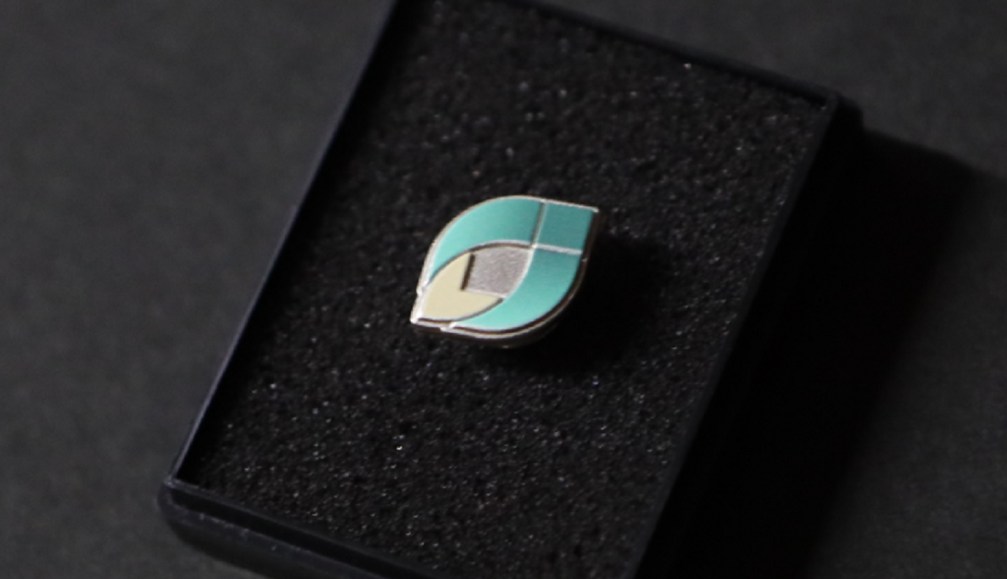 グリーンのグラデーションとベージュカラーを含む新ロゴの特徴を再現するため、通常の単色による疑似七宝では対応が難しい中、真鍮銀メッキ+インクジェット印刷の技術を用いることで、美しいグラデーション表現を実現しました。