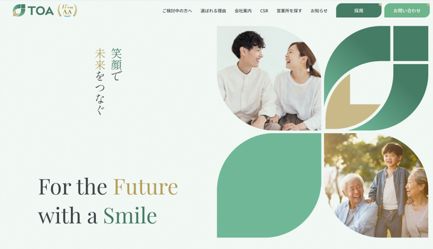 昭和49年(1974年)の創業以来、お客様のライフスタイルにあった商品や情報を提供し、生涯を通じてお客様に信頼される保険代理店として活動を続ける、株式会社トーア様のコーポレートサイトリニューアルデザイン制作を担当させていただきました。